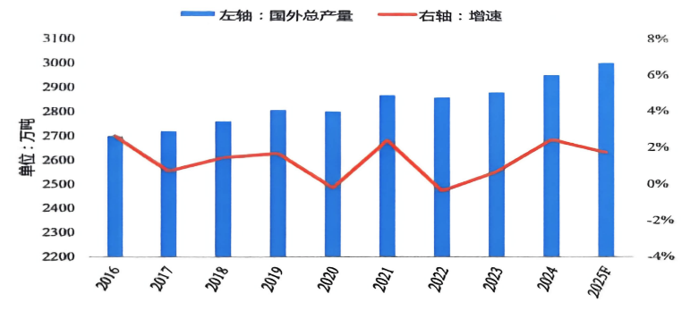圖1-2 2016-2025F國(guó)外電解鋁產(chǎn)量